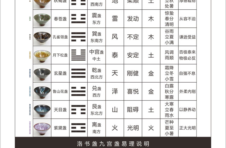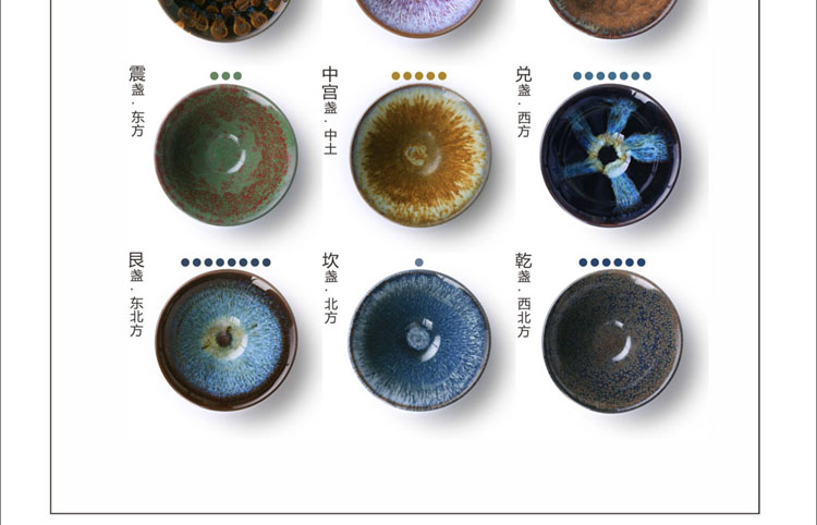 遠思設(shè)計攜手“住茗”團隊的藝術(shù)家們經(jīng)過2年對各類出土文物和歷史傳承的挖掘,終于讓消聲匿跡了500多年的福建均瓷再次展露光芒?!白≤钡木阉伪K共三十余款,每款都將傳統(tǒng)美學、地域、文化融入其中,經(jīng)過無數(shù)的釉色調(diào)制,反復(fù)試燒而最終確定。經(jīng)過專業(yè)的史料確定,選其中九款為“洛書”款。